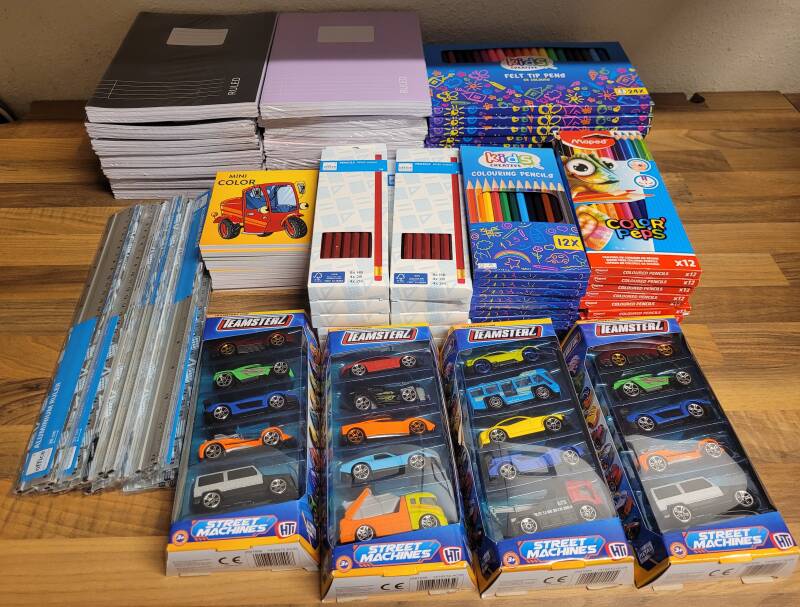 Dit allemaal weggebracht naar Stichting Proplan voor de rugzakjes. Allemaal schoolspullen en speelgoedjes twv €298,22